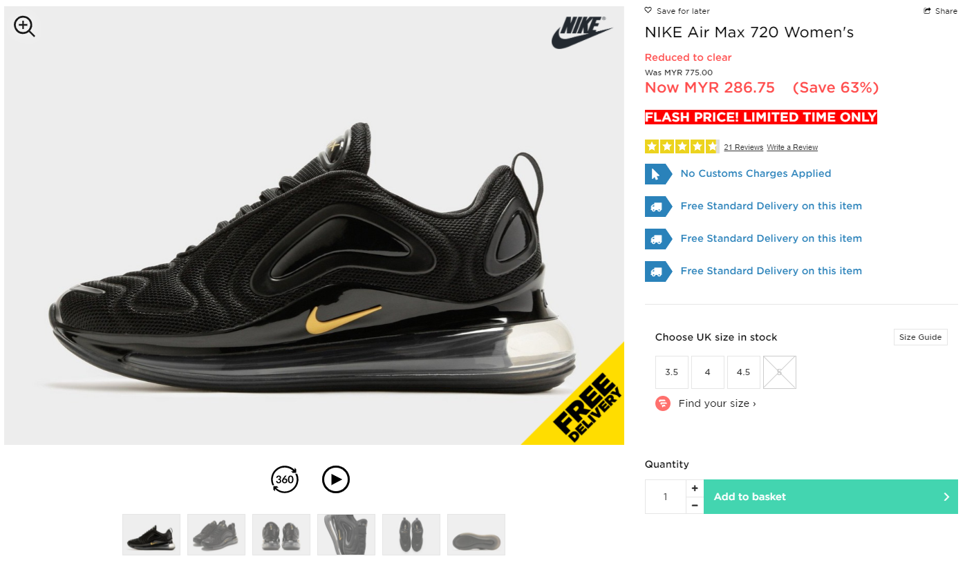 ▼ NIKE Air Max 720 Women’s – 只需RM286.75(原价 RM775)!