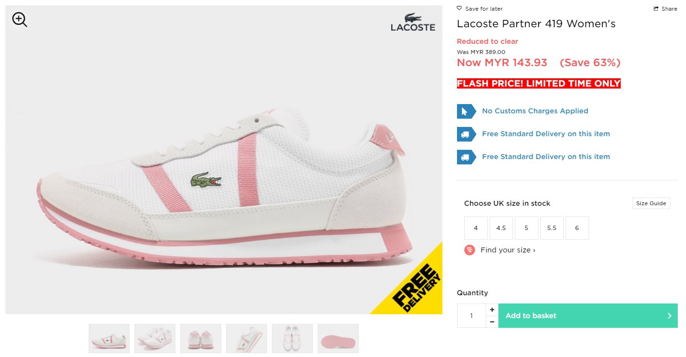 ▼ Lacoste Partner 419 Women’s – 只需RM143.93(原价 RM389)!