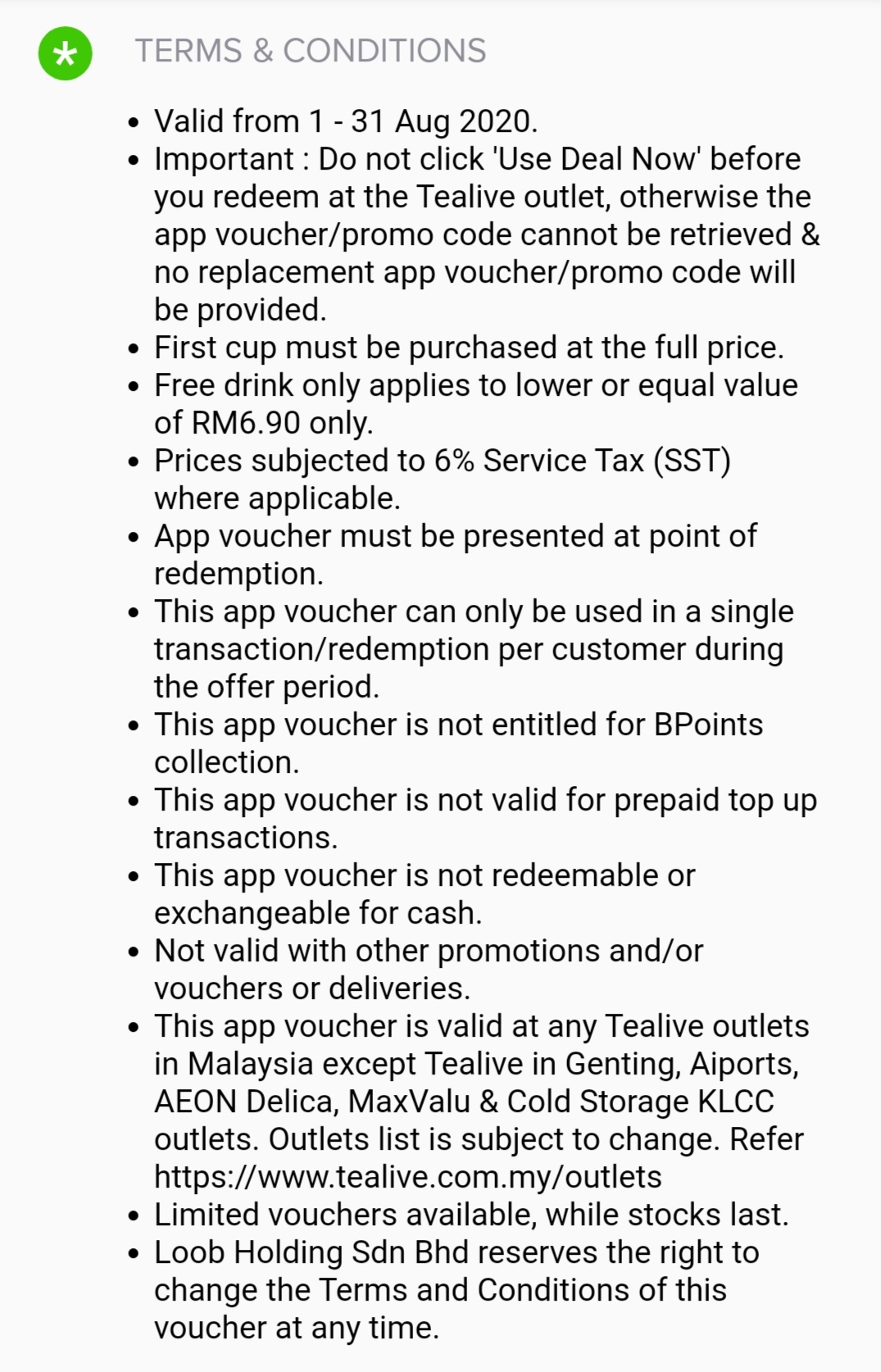 促销地点:全马 Tealive 分行(除了机场分行、Tealive Genting、Aeon Delica、MaxValu、Cold Storage KLCC 分行)