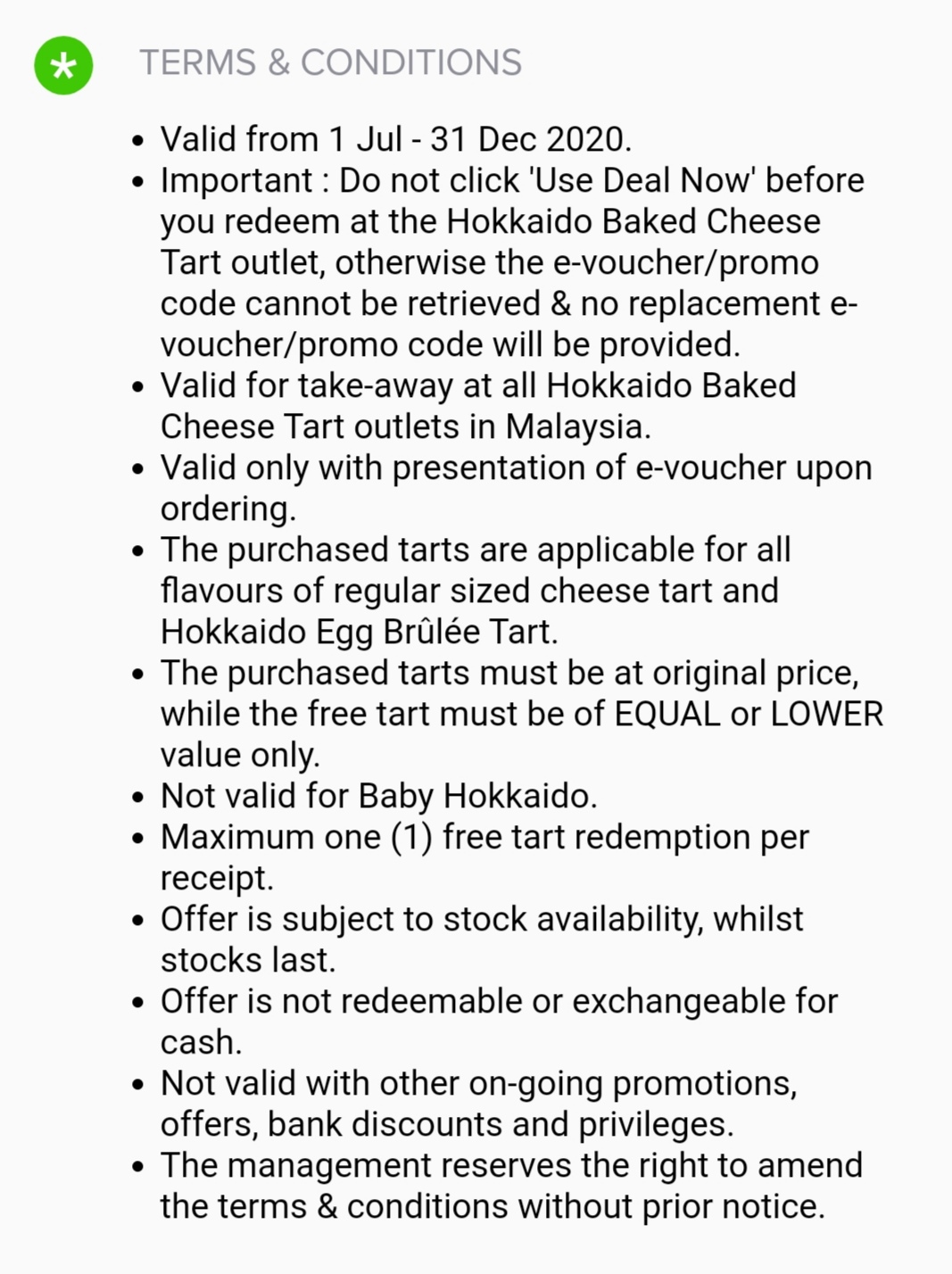 促销日期:即日起至 31 Sept 2020 (除了星期日和公共假期)