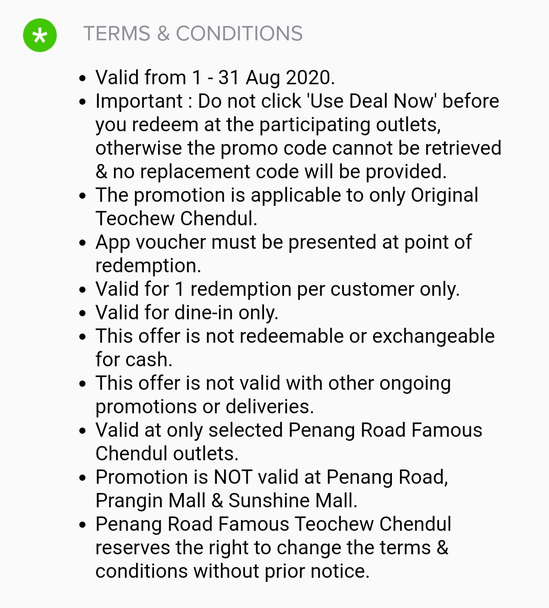 促销地点:限定 Penang Road Famous Chendul 分行(不包括Penang Road、Prangin Mall及Sunshine Mall 分行)