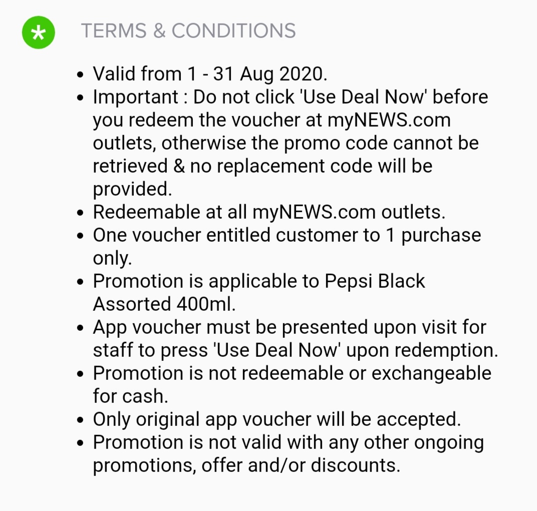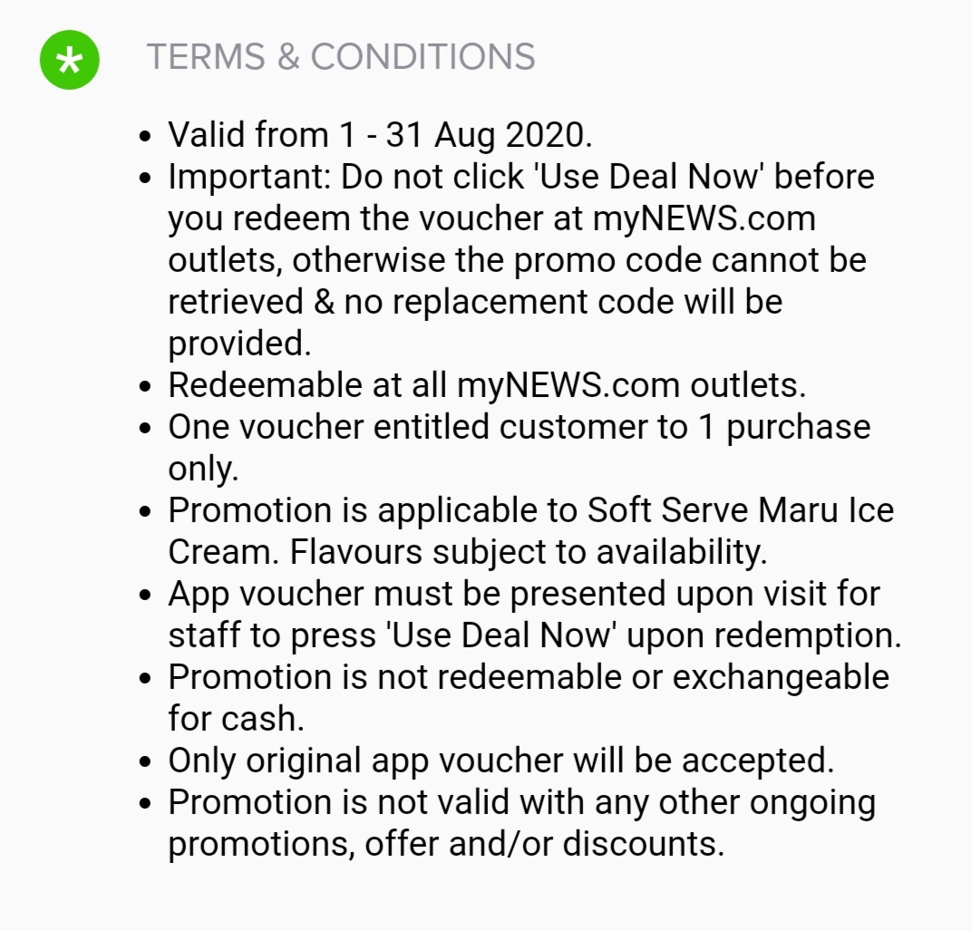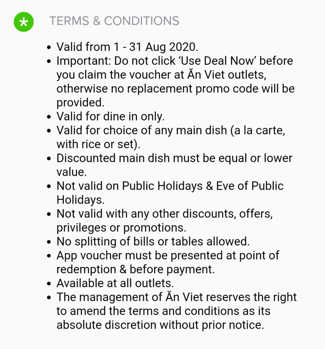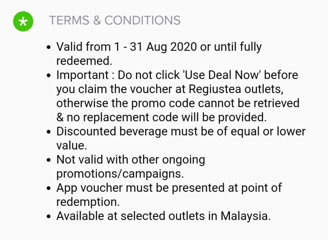 促销日期:即日起至 31 Aug 2020(星期一至星期日,包括公共假期)