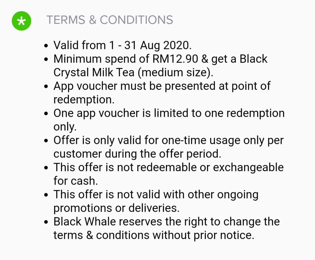 - 最低消费RM12.90 饮料,可免费获得一杯 Black Crystal Milk Tea(Medium Size)