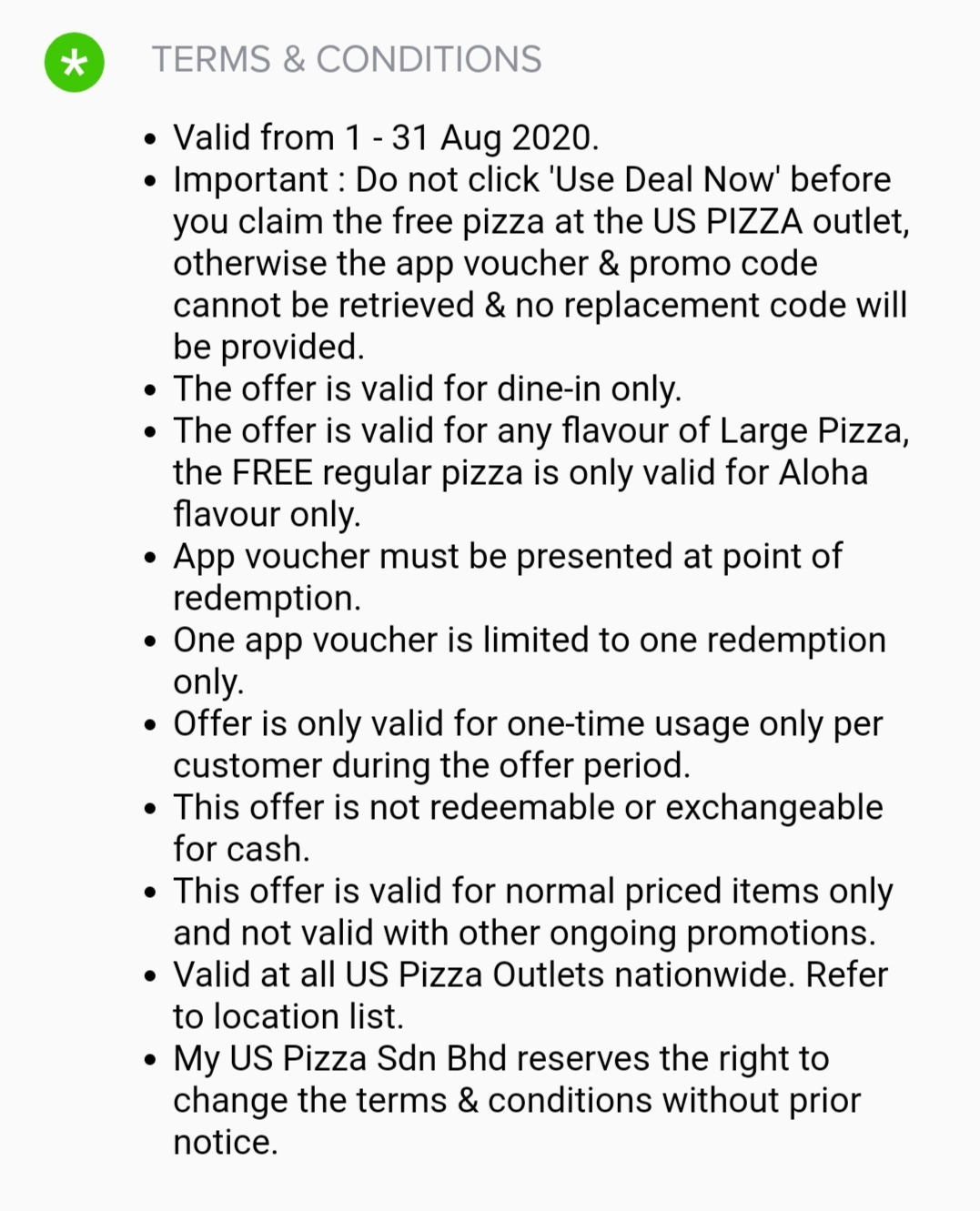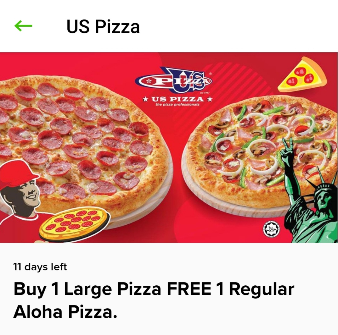 7. US Pizza —— 买一份大Pizza ,免费送一份 Regular Aloha Pizza