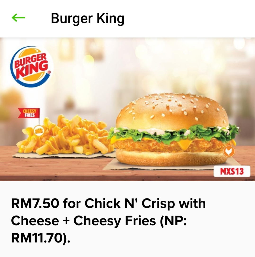 12. Burger King ——一粒Chick N Crisp汉堡+ Cheesy Fries只需RM7.50