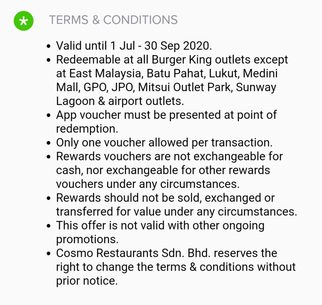 促销地点:大马 Burger King 分行(除了East Malaysia分行,Batu Pahat、Lukut、Medini Mall,GPO ,JPO,Mitsui Outlet Park,Sunway Lagoon 及机场分行)