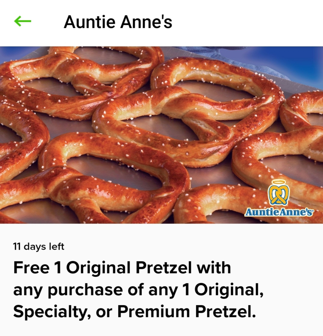 15. Auntie Anne’s —— 购买一份Pretzel,可免费获得一份原味Pretzel
