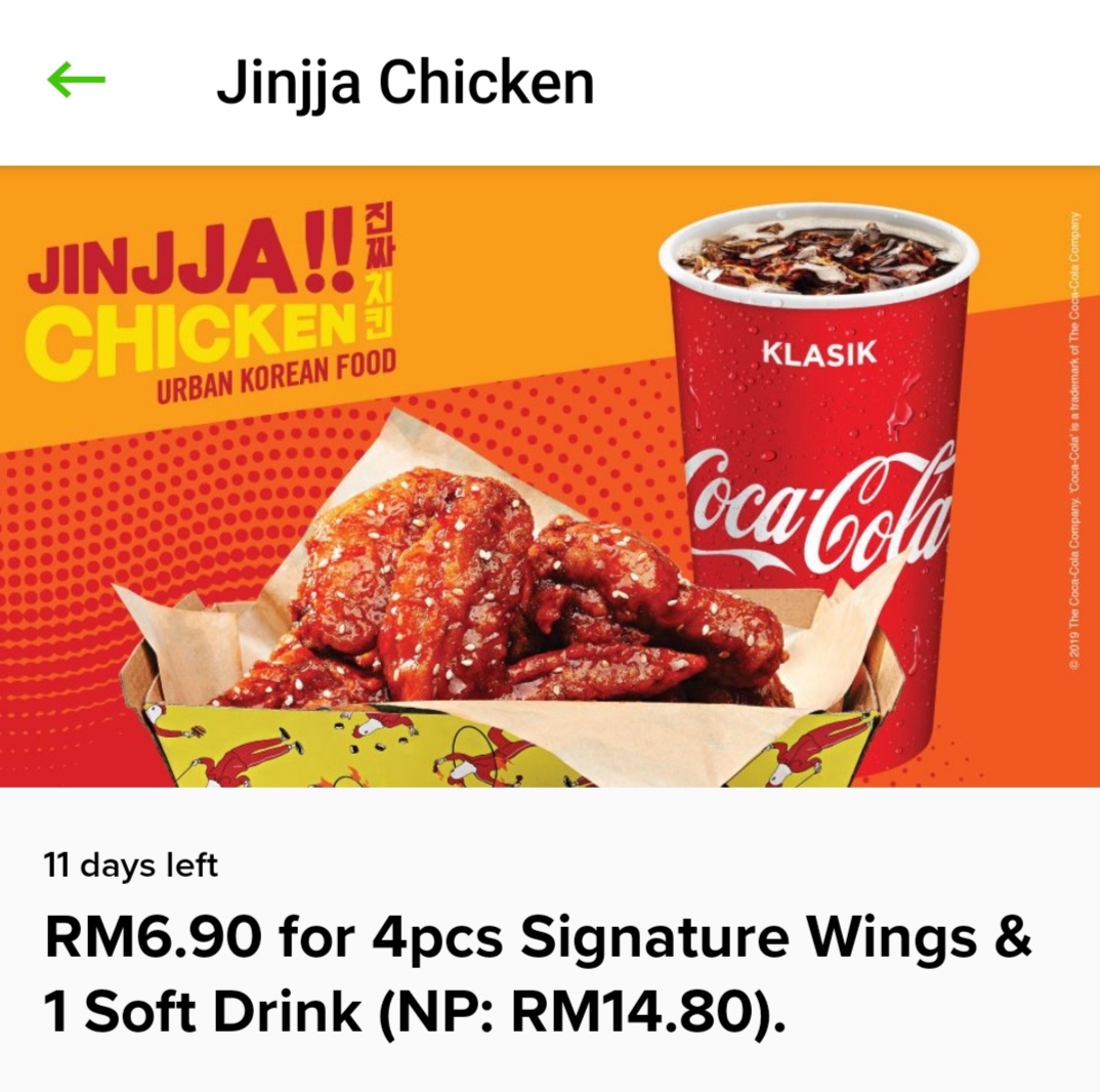 21. Jinjja Chicken —— 4pcs Signature Wings 和一杯饮料只需RM6.90