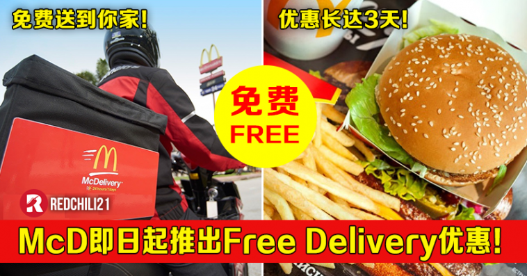 只要你通过 McDelivery 订购餐点,就可享有免费外送服务!这项优惠从即日起至8月19日,只限三天优惠!