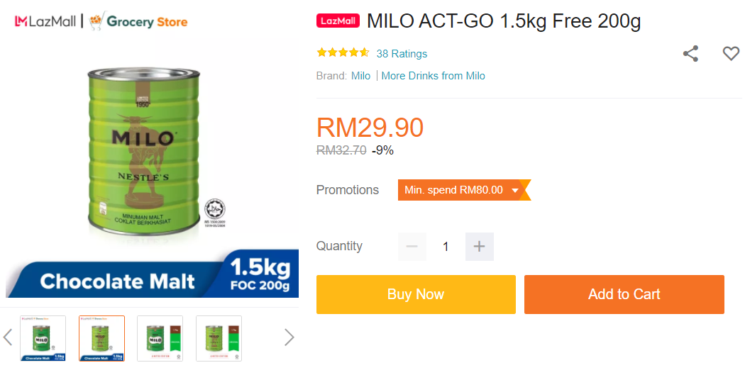 这次的优惠是在Lazada 的Grocey Store 官方网推出的促销活动!而且还全新推出限量版50年代和70年代罐装的Milo 哦!