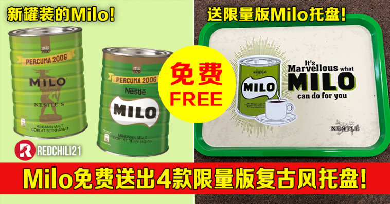 大马人早上最爱喝的饮料非Milo莫属了!如今购买Milo 还享有折扣优惠及免费送出4款Milo 限量版复古风托盘!