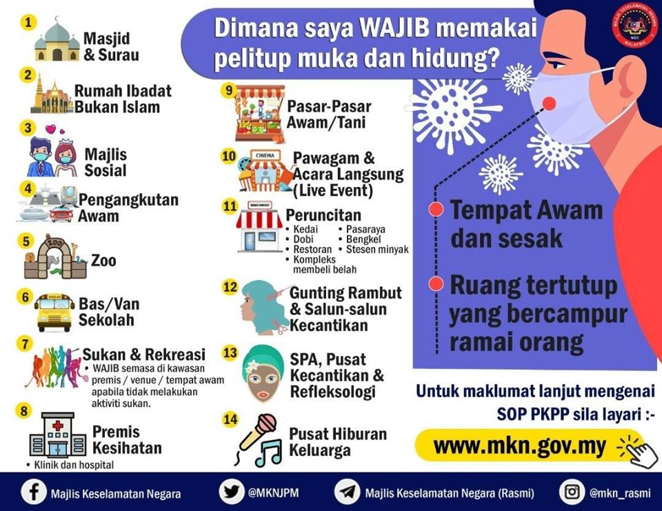 今日,大马国家安全理事会(MKN)在面子上列出:民众必须在这「14个公共场所」佩戴口罩!现在我们来看看有哪些场所吧!