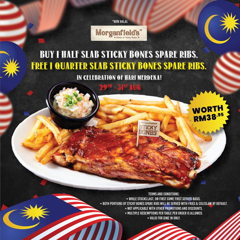 - 购买一份Half Slab Sticky Bones Spare Ribs 免费送出一份Quarter Slab Sticky Bones Spare Ribs(价值RM38.95)