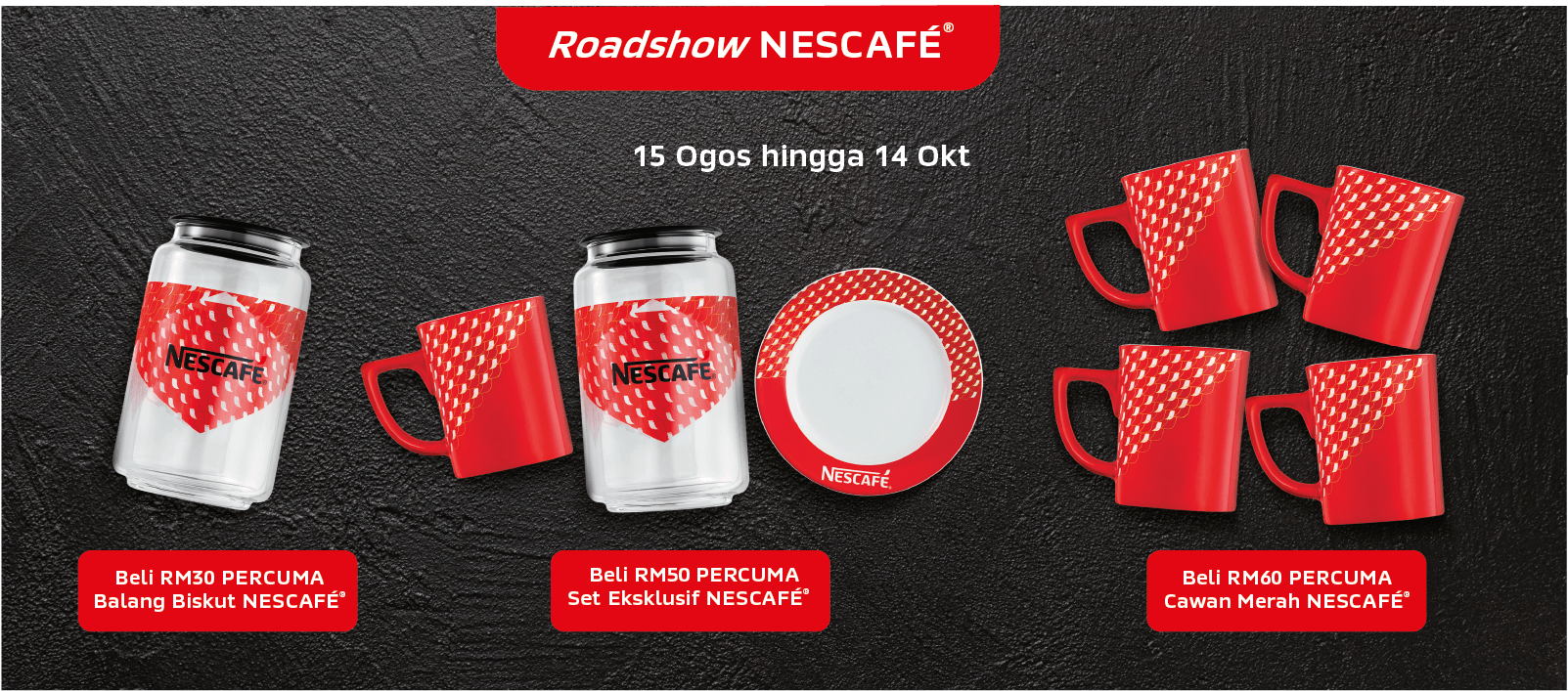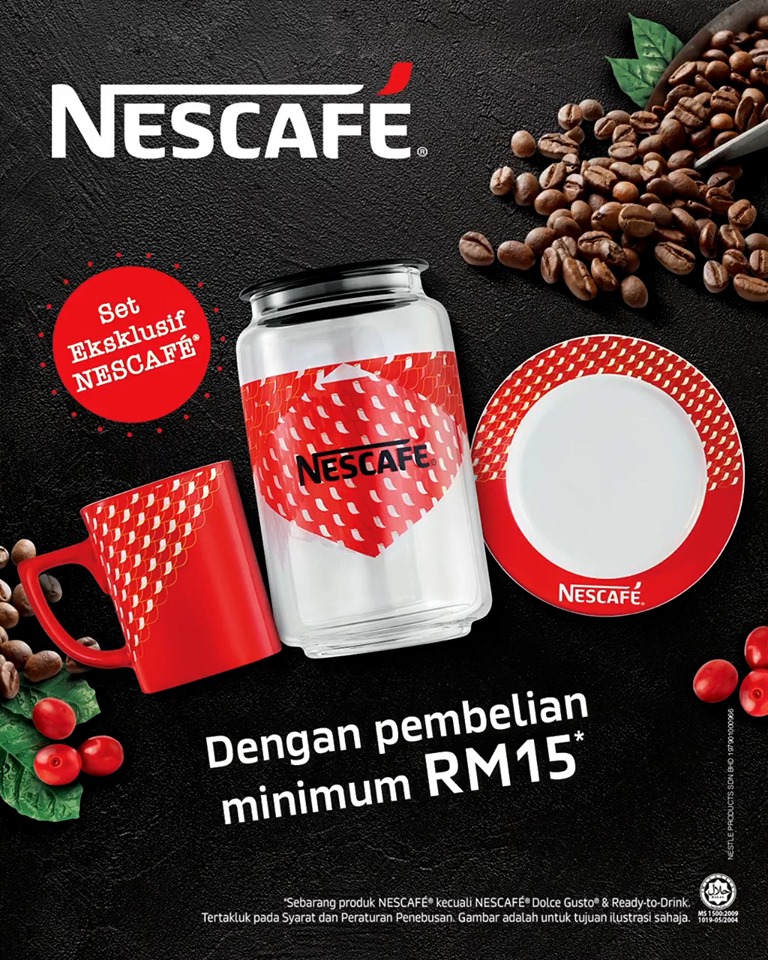 - 购买RM50 或以上Nescafe产品,可免费获得一套Nescafe餐具套组