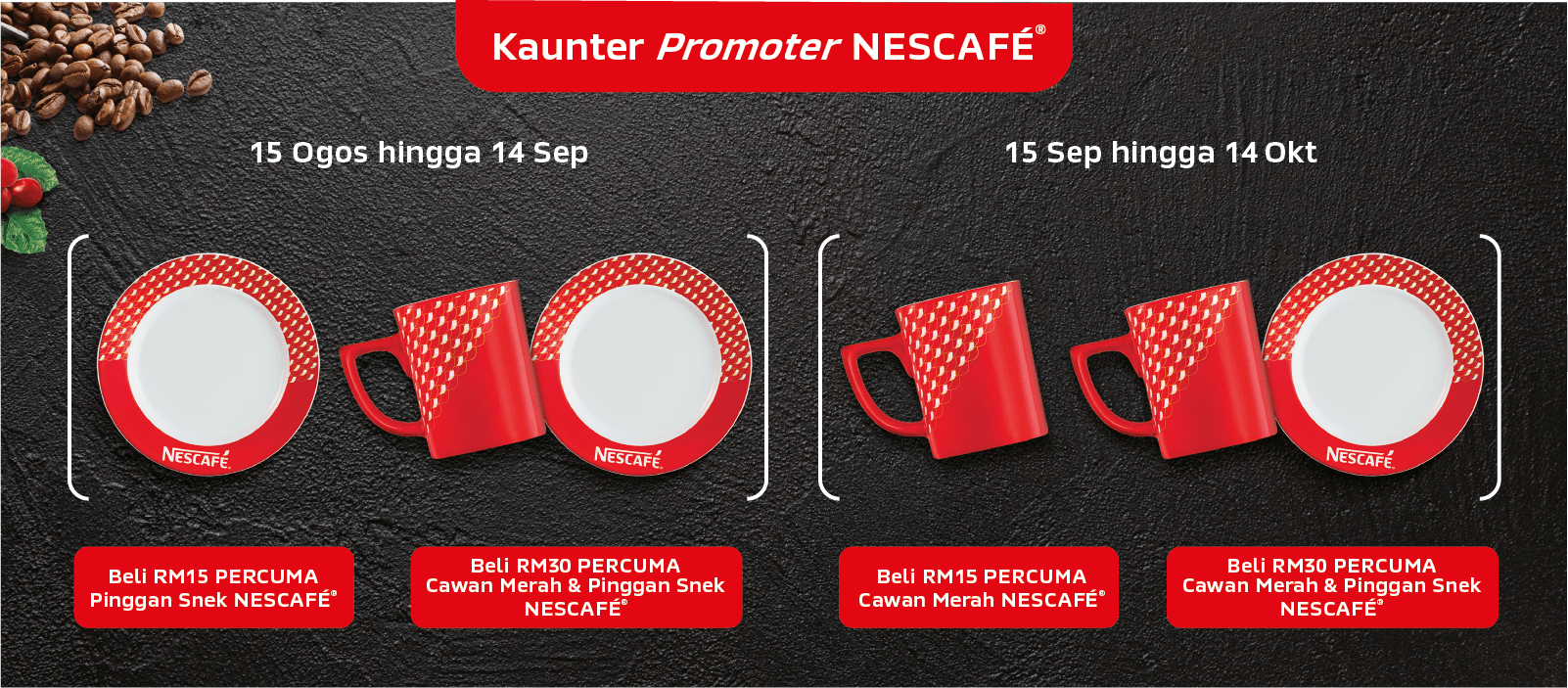 - 购买RM15 或以上Nescafe产品,可免费获得一个Nescafe 马克杯