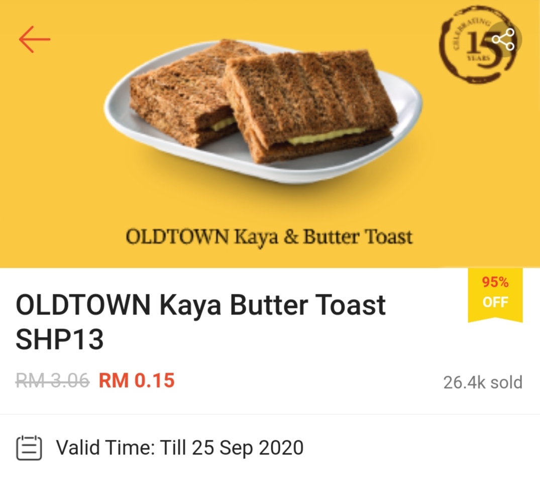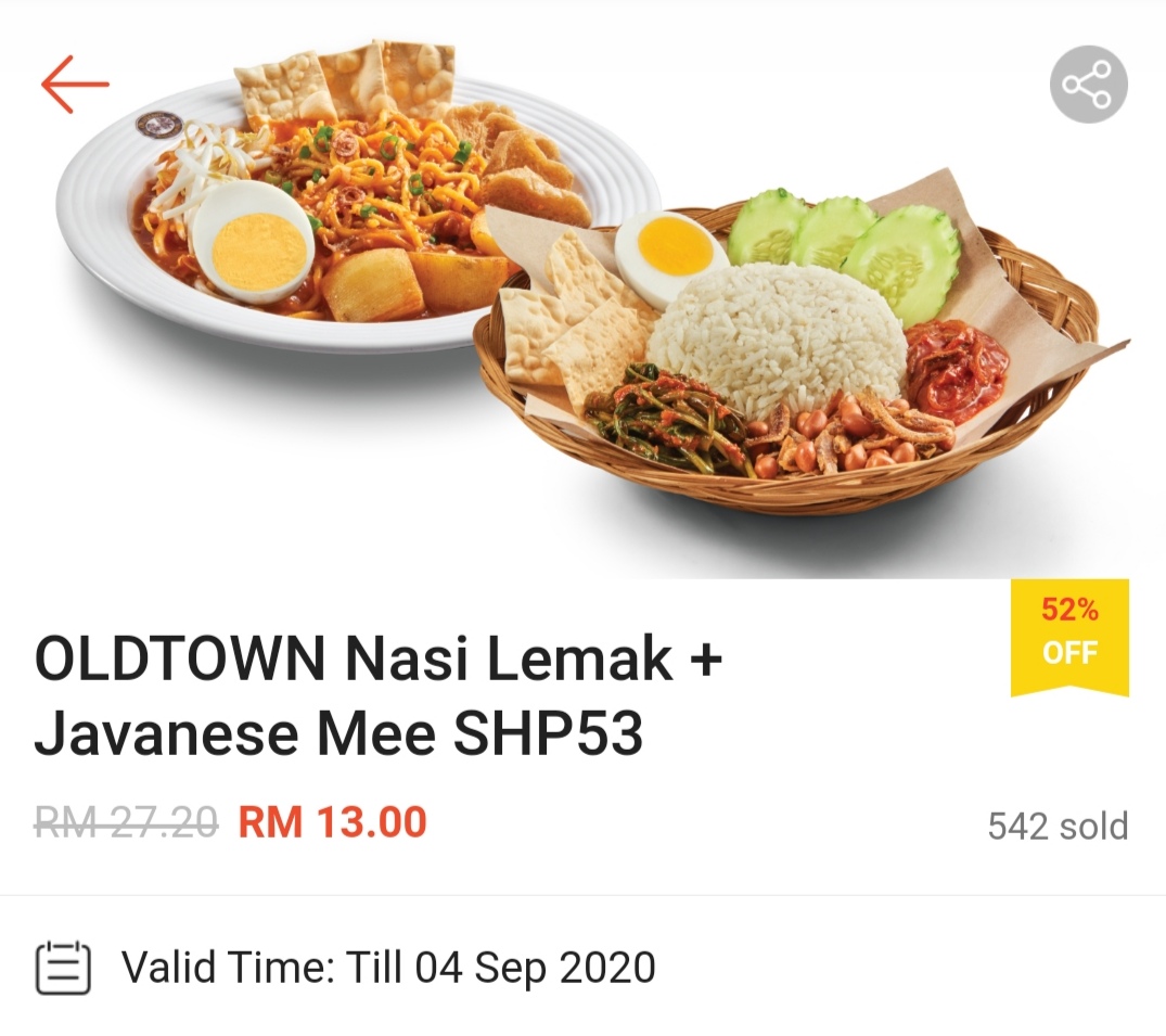 这项优惠是由 Oldtown 与 Shopee 联合推出超值美食优惠券!套餐只需RM6.30、Nasi Lemak套餐只需RM8.31,连Kaya 牛油吐司都享有特价优惠只需RM0.15!