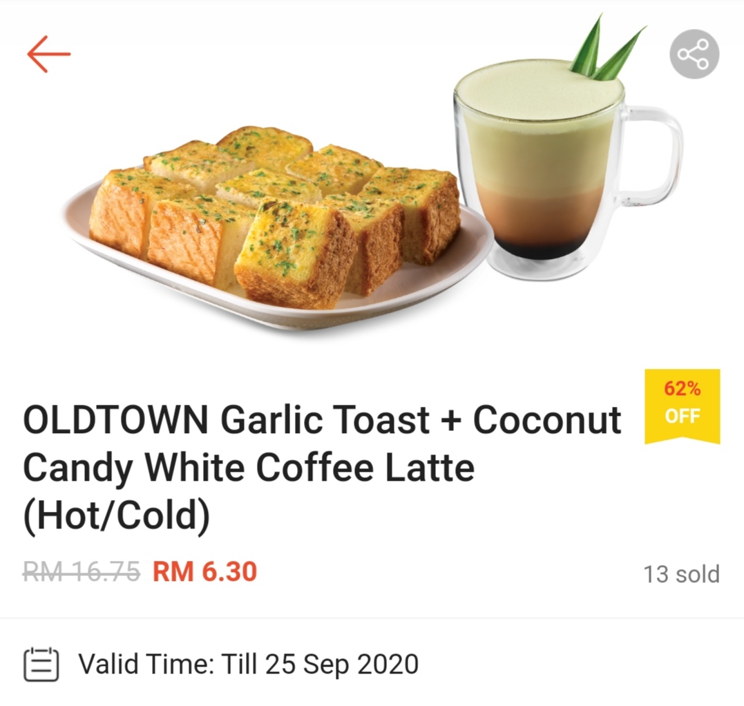 ② Oldtown Garlic Toast(Single)+ Coconut Candy White Coffee Latte(Hot/Cold)—— 只需RM6.30