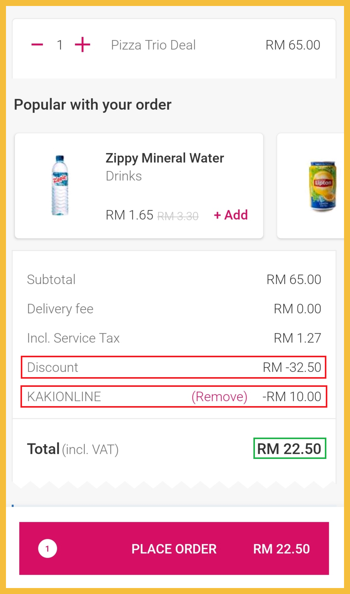 ※ 此时,系统显示出折扣50%后的价钱,但先别急着下单!你还可额外获得RM10折扣哦!
