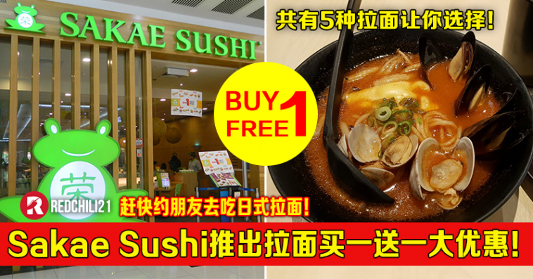 喜爱吃日式拉面的朋友,有好康优惠要告诉你!大马 Sakae Sushi 再次推出买一送一大优惠!