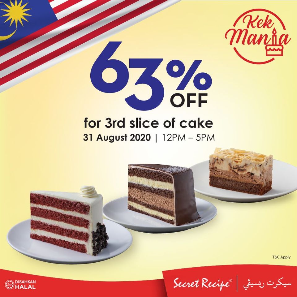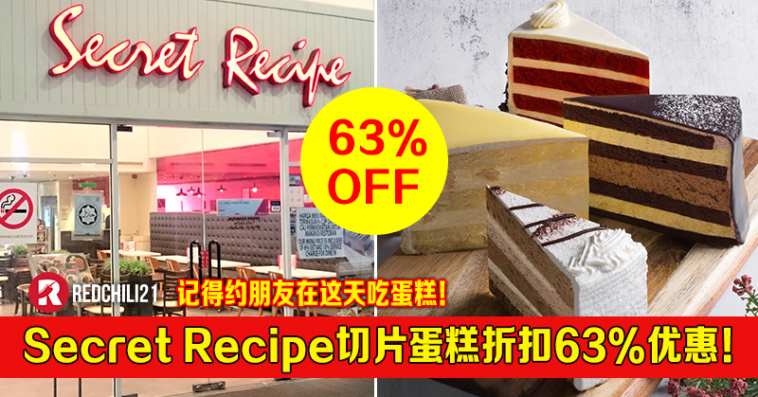 为了配合即将来临的第63届国庆日,大马Secret Recipe 推出切片蛋糕折扣63%优惠!
