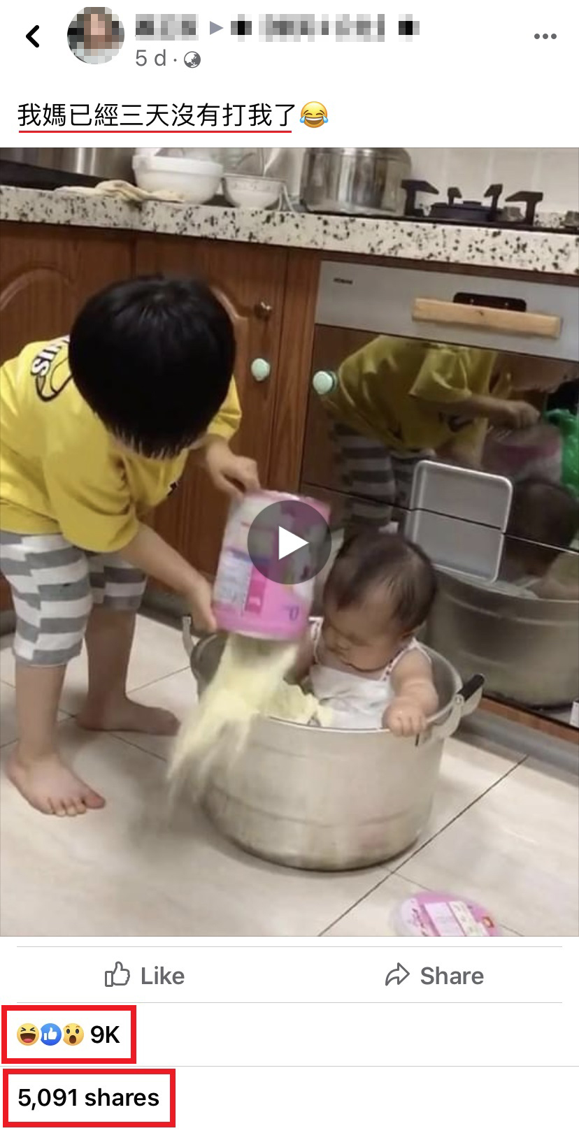 台湾一位妈咪近日在面子书群组分享,家里发生一件令人哭笑不得的事,短短14秒的视频就笑翻许多网友,多达9千人点赞和超过5000次分享。