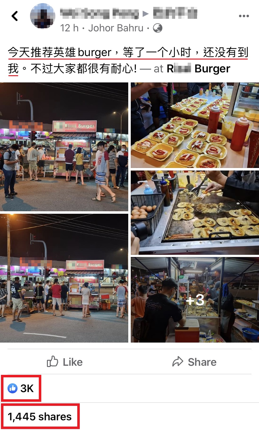 据《中国报》报道,一名巴士司机透露,他从大学城载送了邻里前来买汉堡,指该汉堡档口现在已经成为一个新的打卡地点,还说周末有旅行团来新山时,会带他们来这里走走。