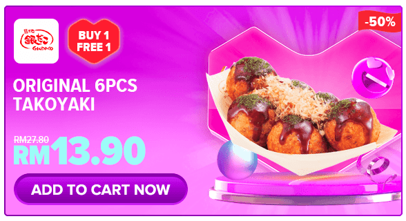 ▼ ② Gindaco – Original 6pcs Takoyaki(原价 RM27.80)现在只需 RM13.90!