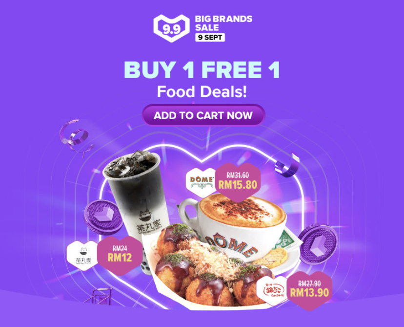 只要在9月9日当天,通过 Lazada 官网或 Lazada App 抢购买一送一的优惠券,这些美食和饮料就是属于你的啦~