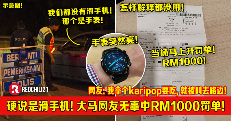 硬被说是滑手机!大马网友无辜中RM1000罚单超无言!网友:我拿个karipop准备要吃,就被叫去路边!