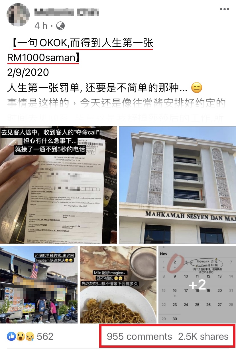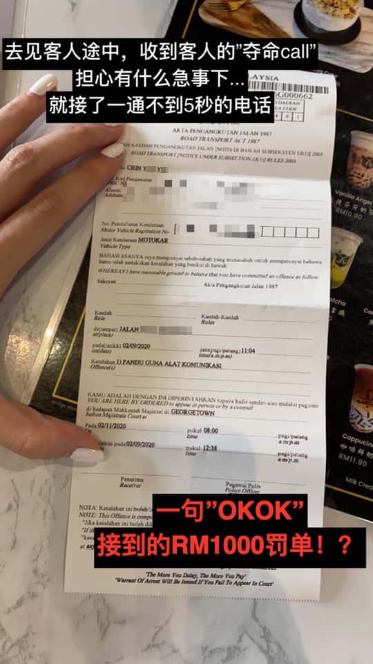 她因为一句“OKOK” 就中了 RM1000 的罚单!而且为了缴付这张罚单,她还费了不少时间和工夫。网友们看了以后才惊觉:原来这么麻烦的!