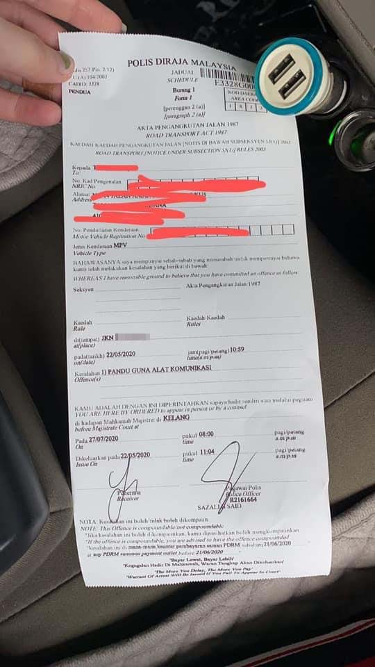 早前大马警方就提醒民众:开车的时候不可以看手机或是讲电话,若被发现,将被开罚单甚至需要上法庭!不要以为这只是说说而已,近期就有不少网友真的中saman了!
