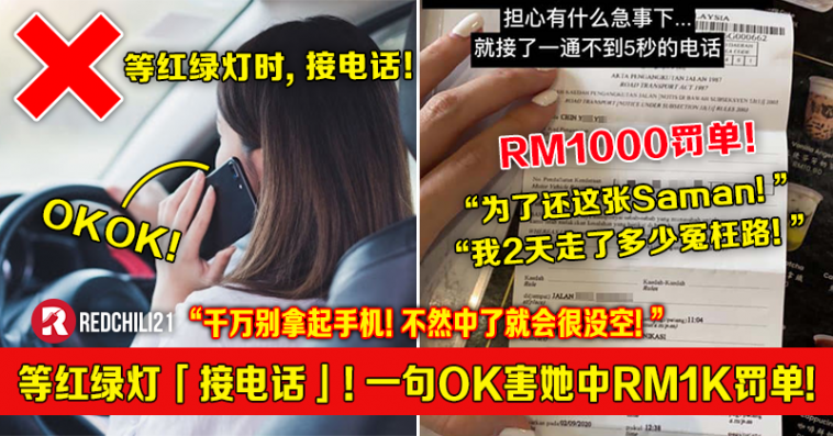 只是拿起手机接电话就丢了 RM1000,真的不能不注意!如果真的有需要在开车时用手机,建议使用手机支架哦!
