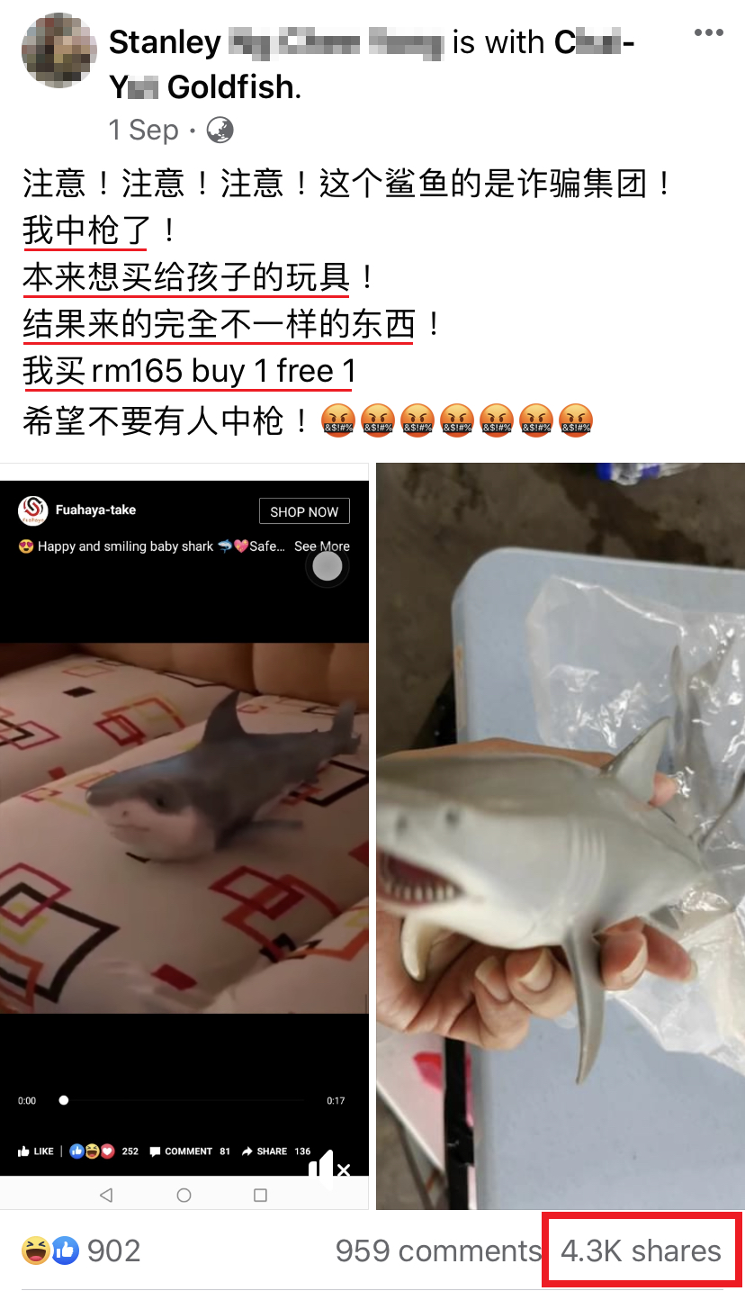 这位经营卖金鱼生意的爸爸,日前在面子书上传视频并分享自己的经历,以为买到了一个可以动的玩具鲨鱼,儿子一定会很喜欢。结果没想到来的却是一个再普通不过的玩具,而且还花了 RM165!