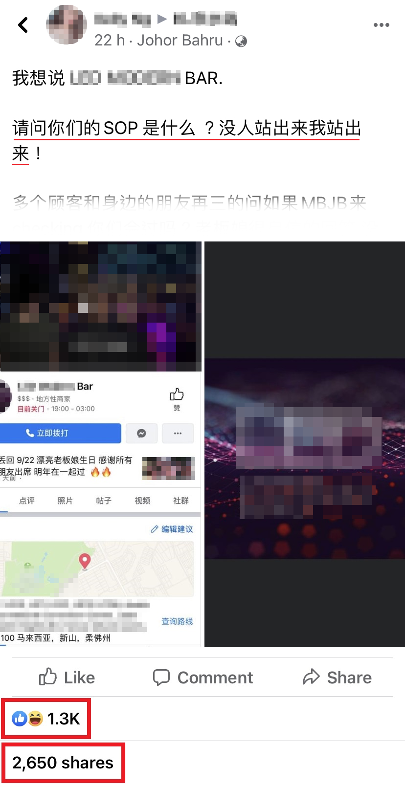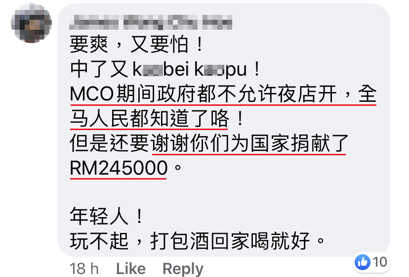 然而近日有2篇帖文在面子书引起热烈争议,其中1名贴主表示事先和店家再三确定有遵守 SOP以后,就和友人相约一起去光顾。没想到当晚“好巧不巧”地就遇上了执法人员的突击检查,约300名顾客当场被带回警局,而且通通都被罚款 RM1000!