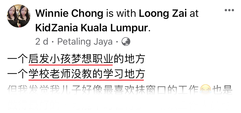 近日一名妈咪 Winnie Chong 就通过面子书分享,她带3岁儿子去 KidZania 玩,结论是:很值得一去!和现实生活一模一样但都是迷你版的,而且可以亲身体验各种职业,超可爱又有趣的!