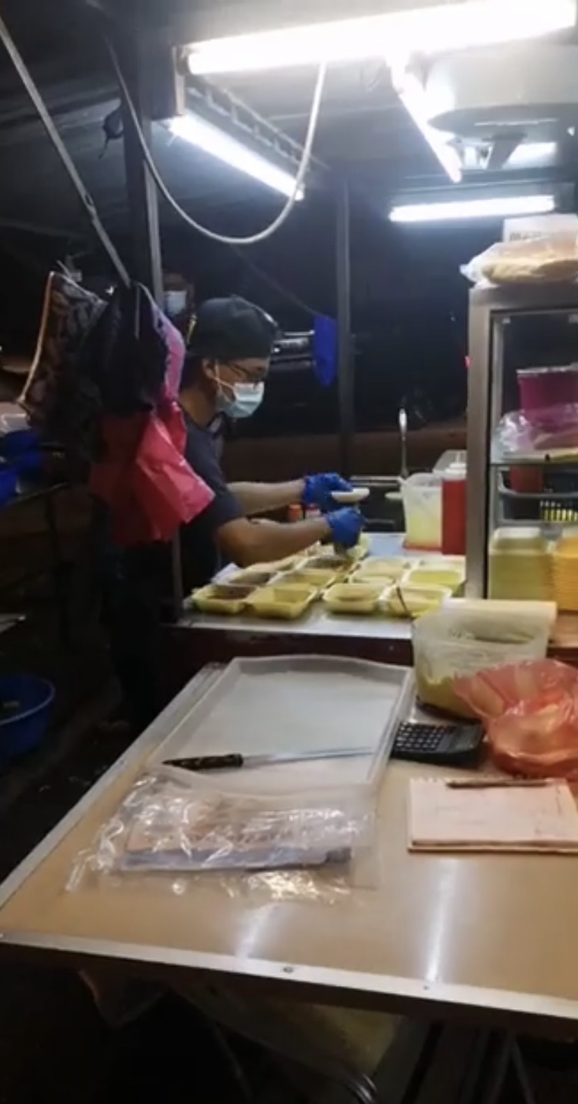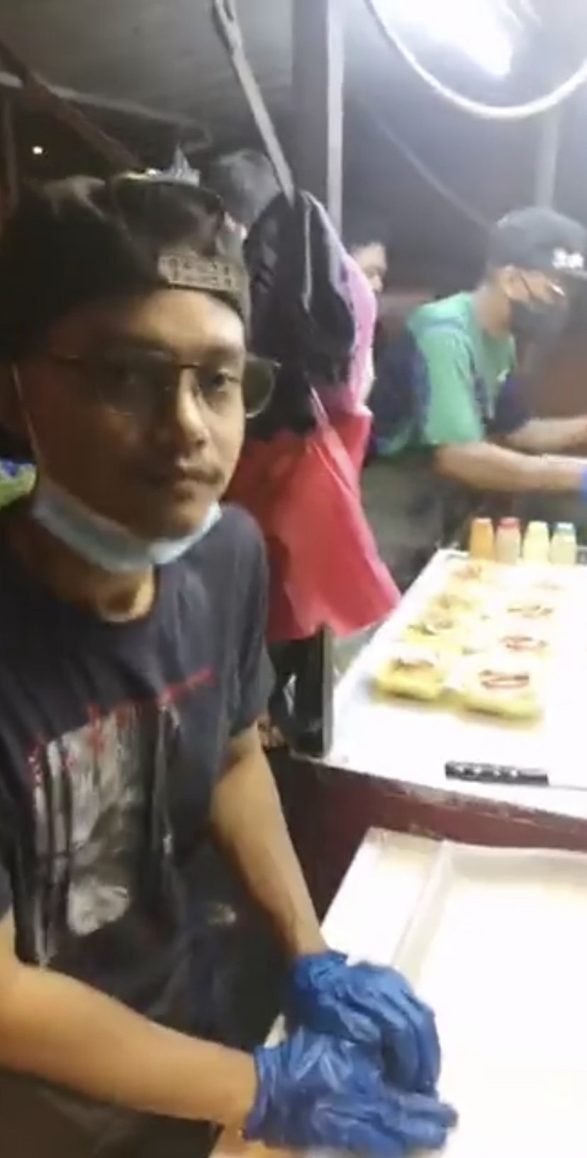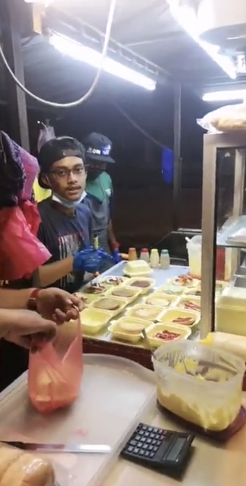 原来非常勤劳的他,就在柔佛 XX Axxxxxxk 交通灯这摆档口售卖汉堡!