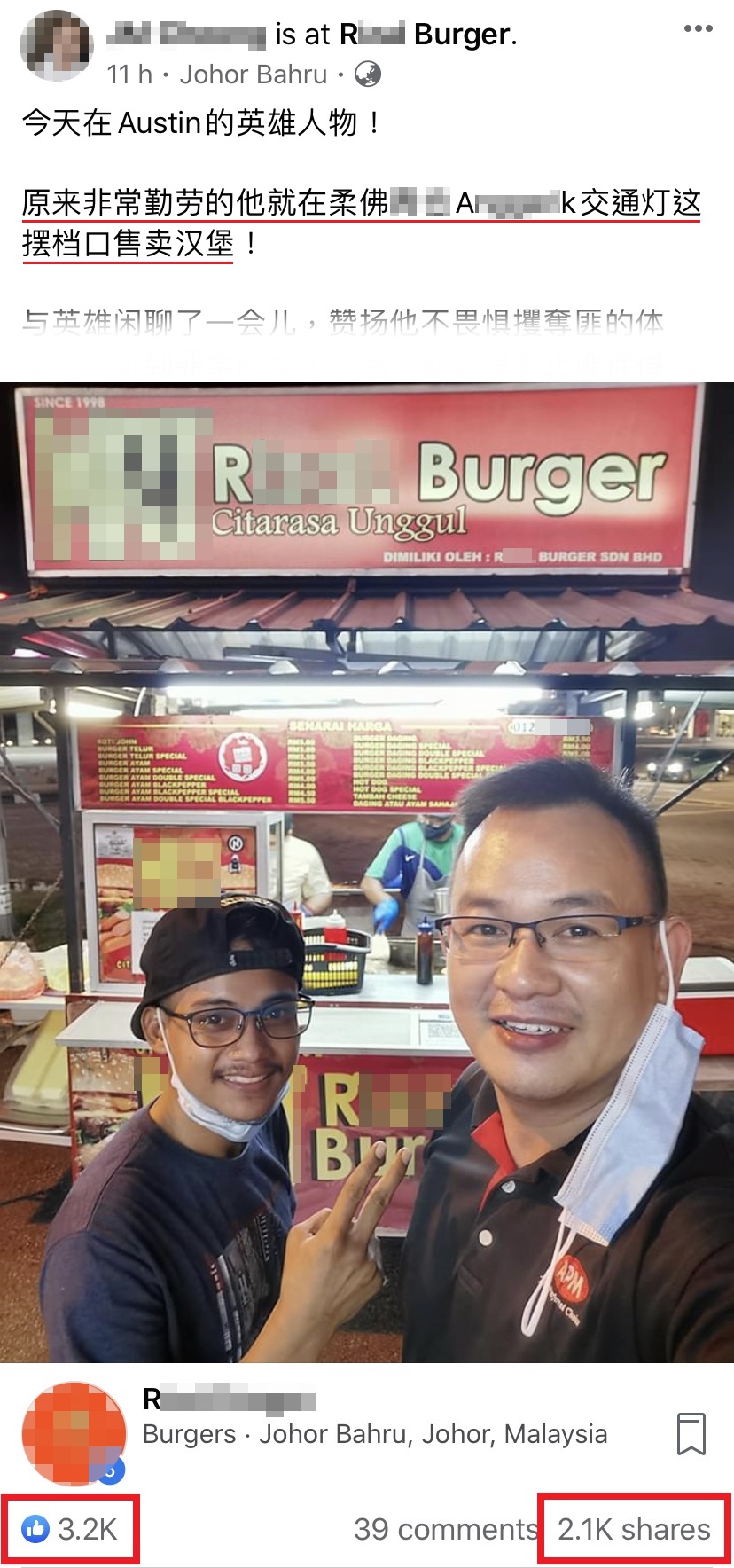 有关照片和视频都在面子书掀起热烈关注和疯传!大家都表示要帮我们的英雄做做宣传,让他的生意蒸蒸日上,以此来报答他的英勇!
