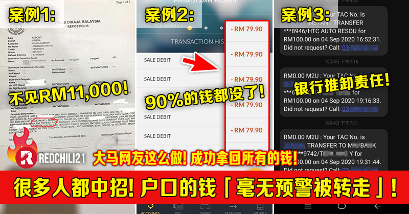 很多人都中招!银行户口的钱「毫无预警被转走」损失多达RM11,000!大马网友这么做!成功拿回所有的钱!
