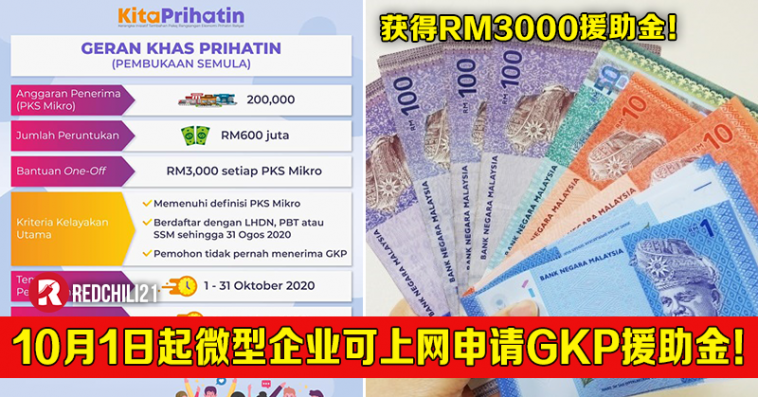 10月1日起微型企业可上网申请GKP援助金!可一次性获得RM3000援助金!