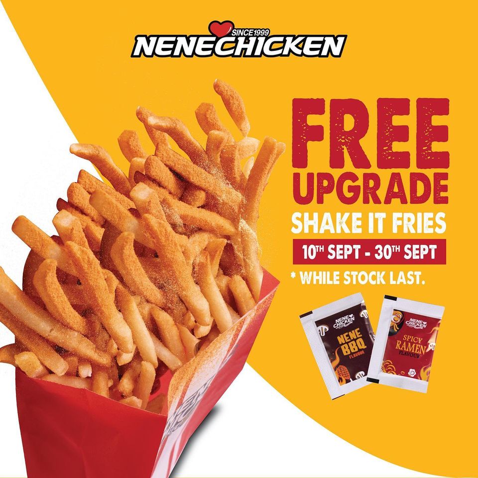 - 只要你购买NENE BBQ 或SPICY RAMEN套餐,就可把原味薯条升级成Shaker fries