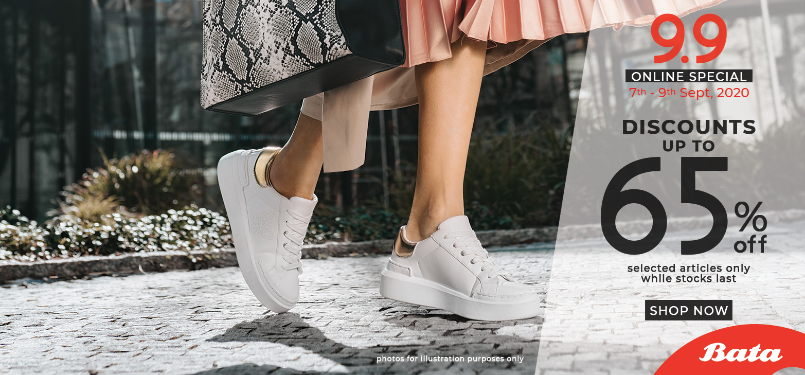 Bata 品牌鞋子再次大促销!为了配合【9.9促销】优惠,Bata 品牌鞋子推出高达65%折扣!