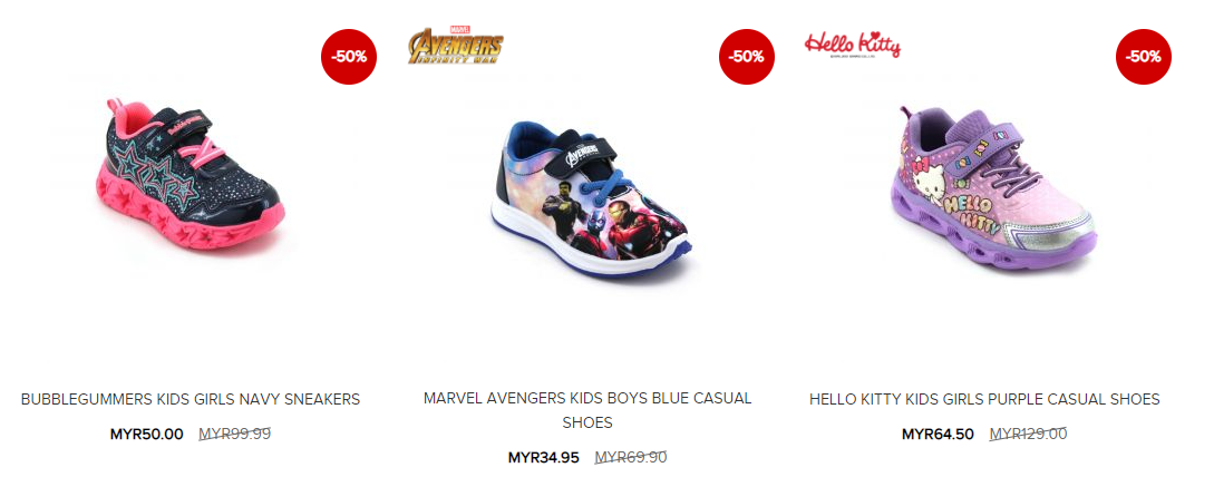 在这项优惠中,不管是男士、女士或小孩的鞋子统统都享有特价优惠!但这次限于Bata 官方网推出折扣65%促销,且还额外折扣10%给你哦!