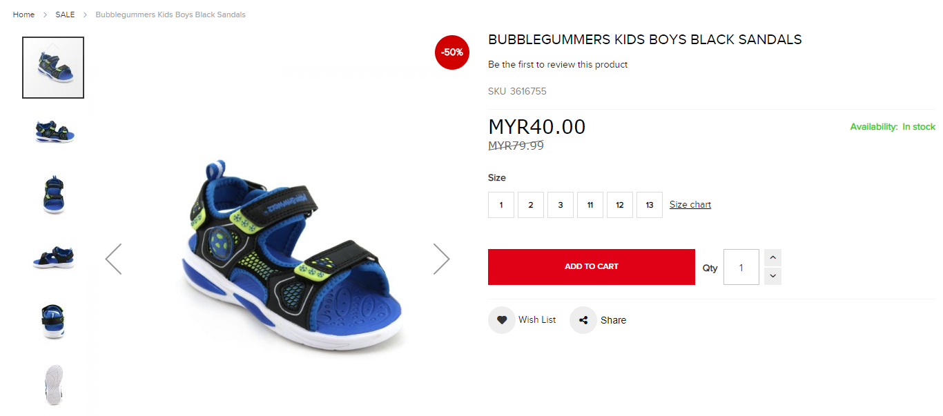 ▼ BUBBLEGUMMERS KIDS BOYS BLACK SANDALS —— 只需RM40(原价RM79.99)