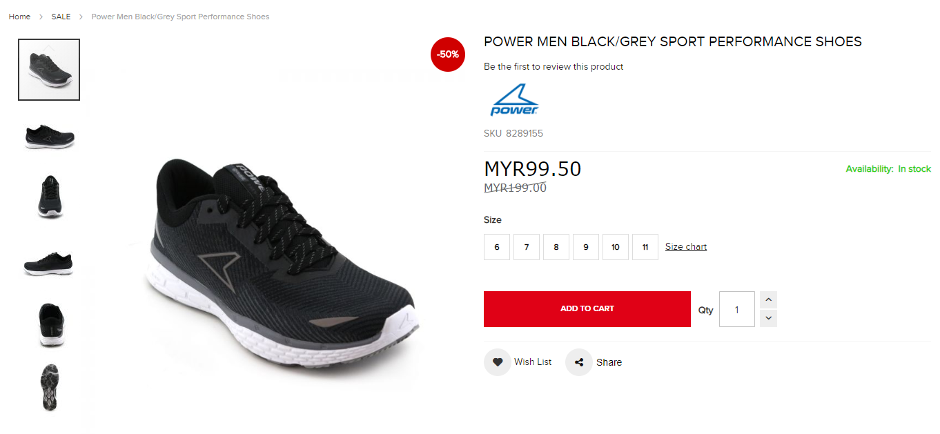 ▼ POWER MEN BLACK/GREY SPORT PERFORMANCE SHOES —— 只需RM99.50(原价RM199)