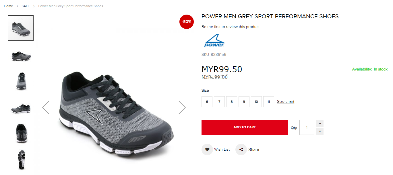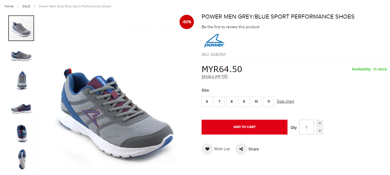 ▼ POWER MEN GREY SPORT PERFORMANCE SHOES —— 只需RM99.50(原价RM199)