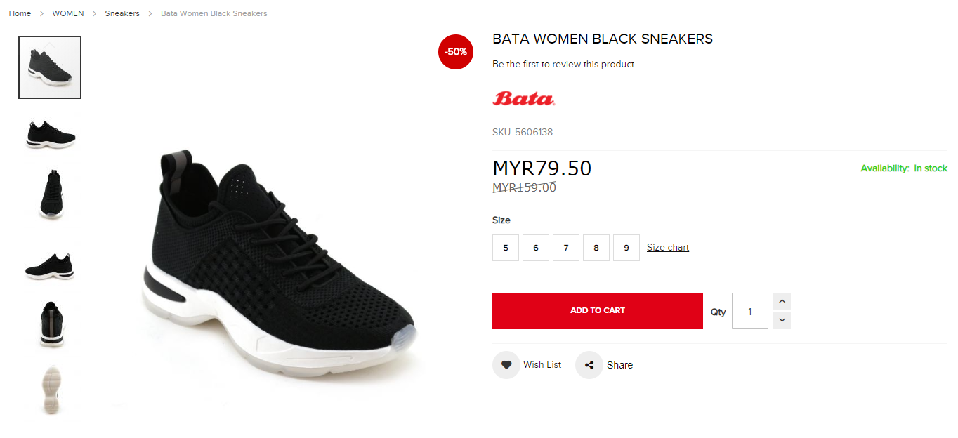 ▼ BATA WOMEN BLACK SNEAKERS —— 只需RM79.50(原价RM159)