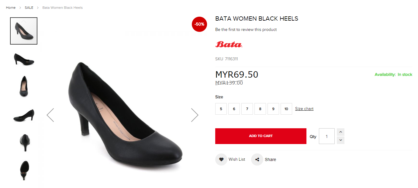 ▼ BATA WOMEN BLACK HEELS —— 只需RM69.50(原价RM139)