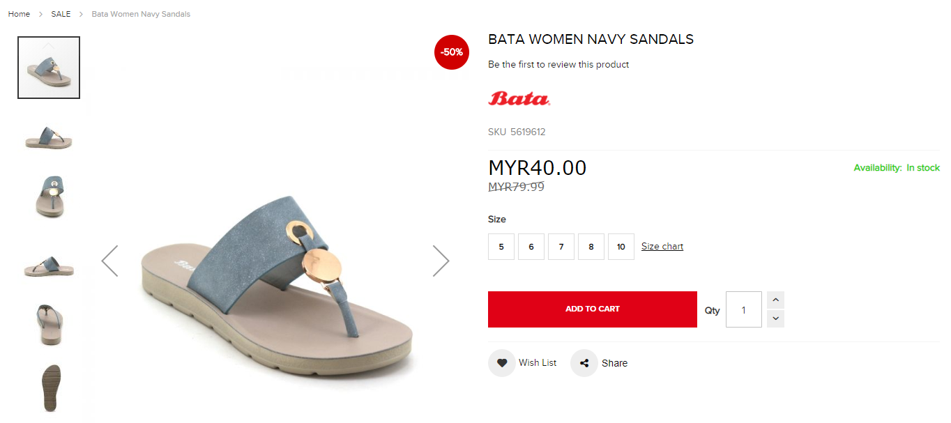 ▼ BATA WOMEN NAVY SANDALS —— 只需RM40(原价RM79.99)