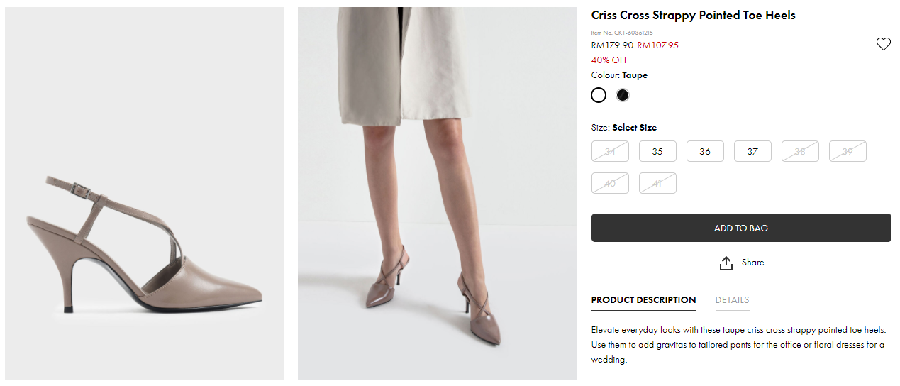 ▼ Criss Cross Strappy Pointed Toe Heels 折扣40% —— 后只需RM107.95 (原价:RM179.90)