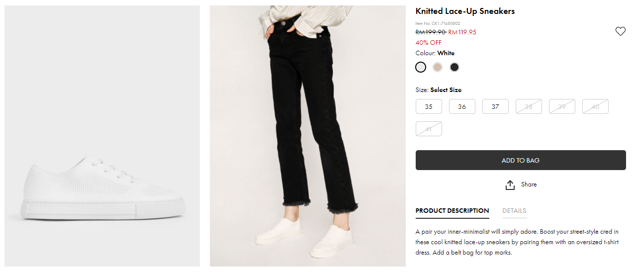 ▼ Knitted Lace-Up Sneakers 折扣40% —— 后只需RM119.95 (原价:RM199.90)